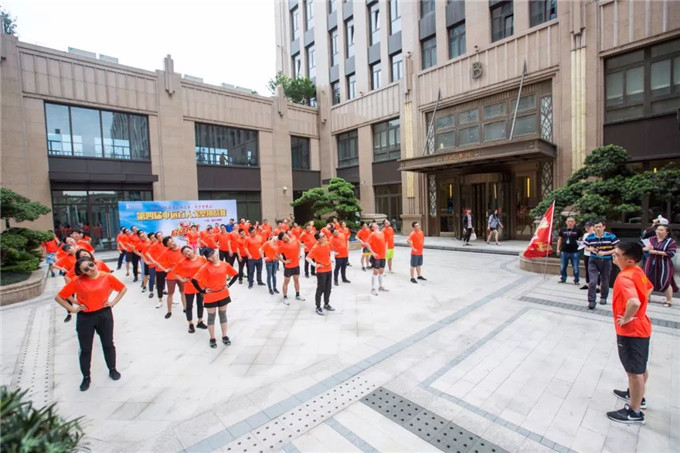 申远健儿们早早地来到申远集团大厦楼下,签到留名